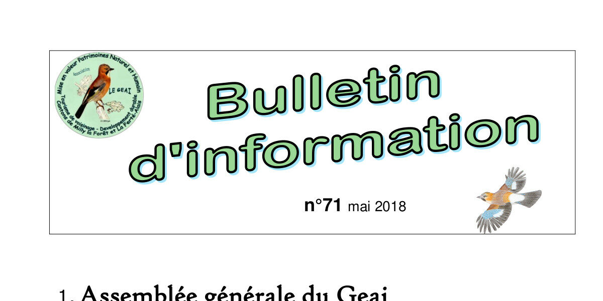 Bulletin d’information n°71 de mai 2018 de l’association Le Geai.